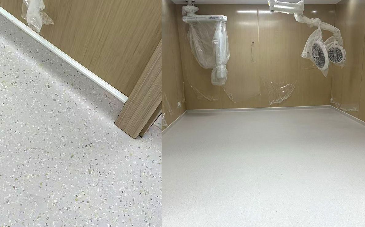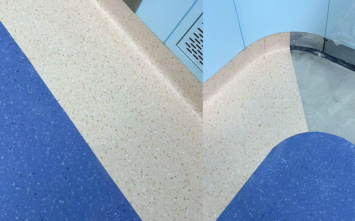 علاوةً على ذلك، ونظرًا لخصائص الأرضيات المضادة للبكتيريا، كلفت شركة Farfly فريق التركيب بتركيب الأرضيات على ارتفاع حوالي 10 سم على الجدران، مما يُوفر اتصالًا سلسًا مع الأرضية. وهذا يُحقق أداءً مثاليًا مضادًا للبكتيريا ومقاومًا للبقع.